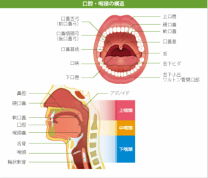 咽頭は鼻の奥から食道・喉頭につながる「空気と食べ物の通り道」です。